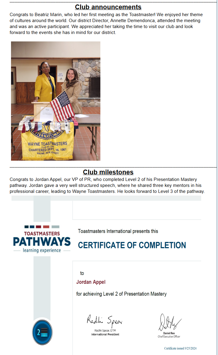Since joining my local Toastmasters club in February 2023, I have advanced on the Presentation Mastery pathway, which focuses on how to become a better and more confident public speaker.